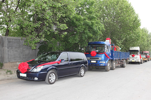 隨后,在禮炮聲中,裝載著大型設備的車隊,駛向大連寶原新廠區。