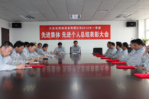 2012年是大連寶原核設備有限公司實現總體搬遷、全面提升企業能力、跳躍發展的第一年和關鍵性的一年。為激發全體員工的生產積極性和創造性,使員工以嶄新的精神風貌、高度的主人翁責任感、使命感和飽滿的工作熱情投身于企業的大發展中,把開展以“爭創先進團隊,爭當示范標兵”的“八講八比”勞動競賽活動引向深入,以先進典型人物的事跡鼓舞、感染、帶動、激勵全體員工在生產經營工作中奮發向上、團結拼搏,確保公司全年生產經營目標任務的完成,寶原公司于5月11日召開了2012年一季度先進集體、先進個人總結表彰大會。核電分廠榮獲“先進集體”稱號;趙治祥等九名同志榮獲“單項標兵”稱號;李成君等5名同志榮獲“先進班組長”稱號;趙宏帥等14名同志榮獲“2011—2012年度優秀青工”稱號。