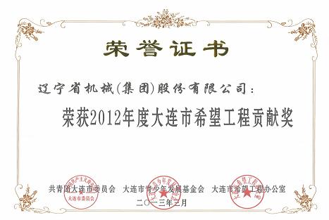 集團(tuán)公司榮獲“2012年度大連市希望工程貢獻(xiàn)獎(jiǎng)”稱號(hào)