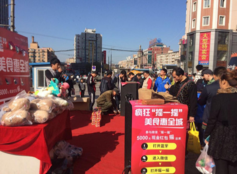 逸彩城外廣場組織了“瘋狂搖一搖,美食惠全城”活動