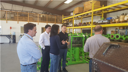 赴美考察期間,吳巖董事長帶領考察團與美國API石油閥門制造企業AES公司在國際貿易合作和投資方面進行了友好洽談,完成了出口訂單的簽訂。參觀考察石油服務Canon公司,聽取了技術人員對該公司新研發井下探測技術和設備的介紹,并就同Canon公司業務范圍的合作進行了深入探討。