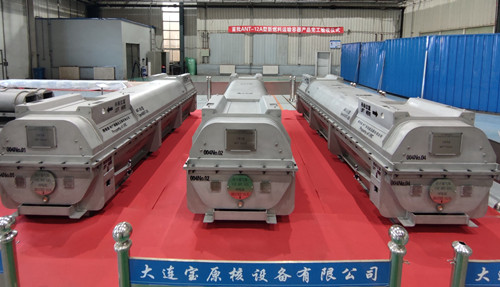 ANT-12A型新燃料運輸容器是國家“一帶一路”倡議重點工程:中國——哈薩克斯坦核燃料組件廠順利投產的關鍵設備。該設備由中廣核研究院有限公司研發,大連寶原核設備有限公司承制。首批產品的順利驗收交付,標志著該型號容器產品在大連寶原核設備有限公司正式進入制造工藝標準化階段,為后續產品批量生產奠定了堅實的基礎。該設備的投入使用打破了國外對我國新燃料運輸設備的市場壟斷,解決了國外對我國同類設備“卡脖子”的難題。